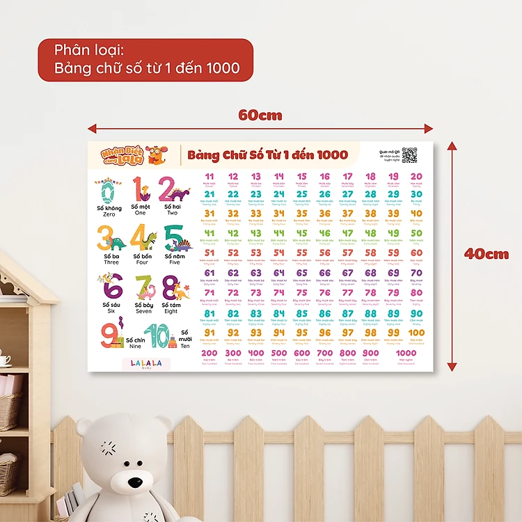 Đồ Chơi Giáo Dục - Poster Dán Tường (Không Keo Dính) Song Ngữ Anh Việt - Bảng Chữ Cái - Chữ Số - Cửu Chương - Động Vật - Lalala baby