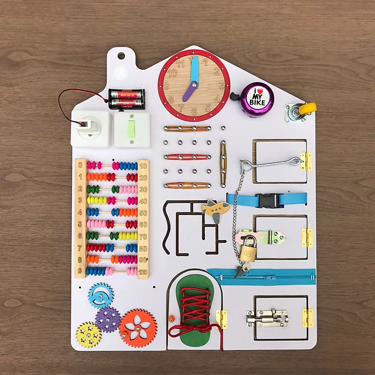 Busy board, Sensory board, Bảng bận rộn là 1 đồ chơi giáo dục sớm, giúp Mẹ rèn luyện kỹ năng vận động tinh cho con sớm.