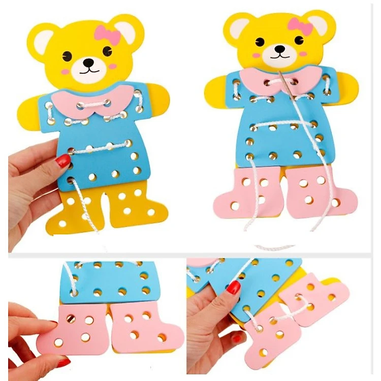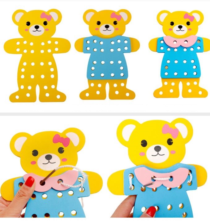 Đồ chơi gỗ - Bộ đồ chơi bé tập xỏ dây, tạo hình thời trang 2 chú Gấu