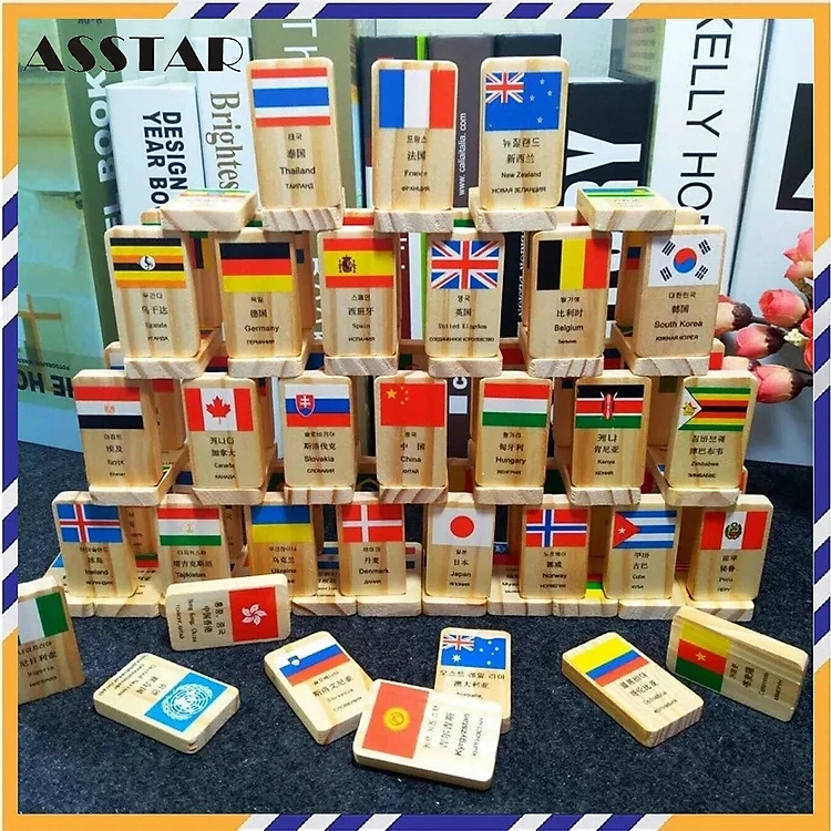 Đồ Chơi Gỗ, Bộ Domino Cờ 100 Quốc Gia Trên Thế Giới, Đồ Chơi Trẻ Em