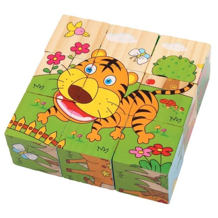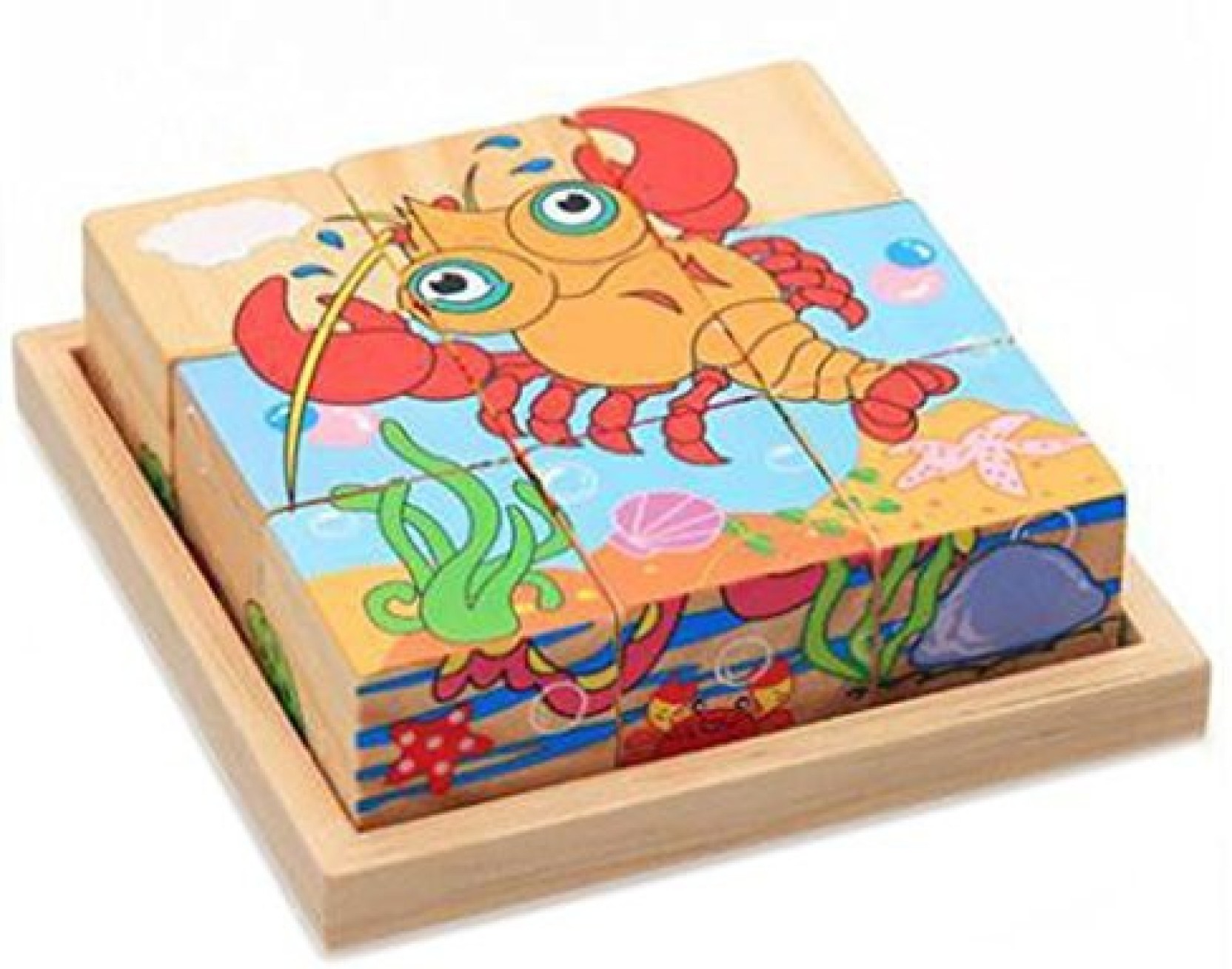 Đồ chơi gỗ ghép hình 9 khối 6 mặt hoạt hình (Giao Ngẫu Nhiên)