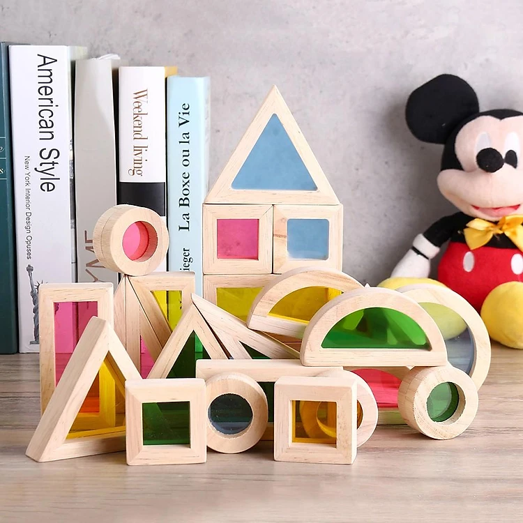 - Với chất liệu gỗ an toàn, có độ bền cao qua các giai đoạn sản xuất và kiểm tra nghiêm ngặt. Cha mẹ hoàn toàn yên tâm nếu trong quá trình chơi bé có thể ngậm vào miệng. Có những mảng màu đan xen trong hình khối khiến trẻ dễ dàng nhận biết và liên tưởng.