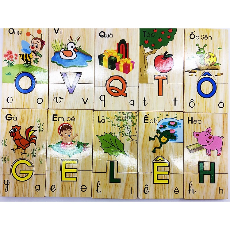 Đồ chơi gỗ phát triển trí tuệ: tìm chữ cái Tiếng Việt