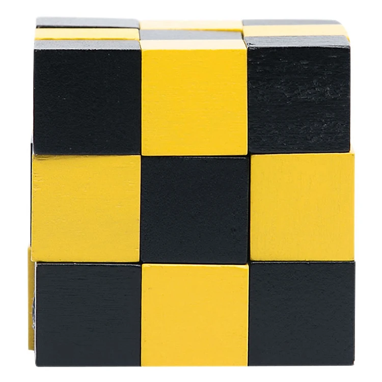 Sản phẩm gồm 27 khối vuông nhỏ, màu đen - vàng đan xen nhau, bé có thể tự xếp thành hình chú rắn tinh nghịch. Sản phẩm được gia công nhẵn mịn, bề mặt không có mùn gỗ hoặc cạnh nhọn, thân thiện với làn da của bé. Cách chơi món đồ chơi rất đơn giản, chỉ như trò xếp hình thông thường, tuy nhiên bé cần sắp xếp khéo léo sao cho tạo thành một thể thống nhất và không bị rời rạc.