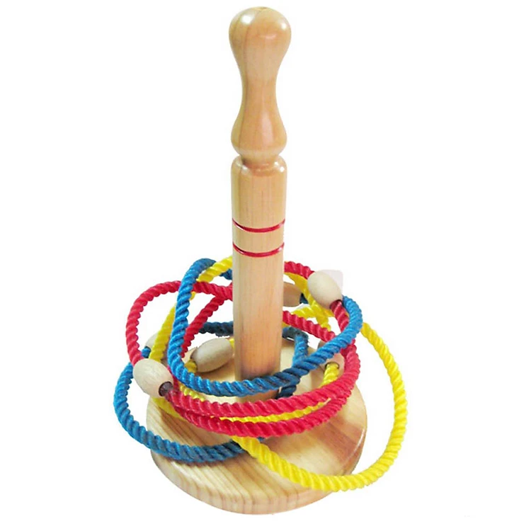 Đồ Chơi Gỗ Xếp Mô Hình Vietoys Thảy Vòng Đế Tròn VTU3-0020 thiết kế cọc gắn trên đế chắc chắn cao 35cm, vững chãi với đế tròn chịu lực tốt. Đi kèm là 6 vòng dây thừng có đường kính 20cm với nhiều màu sắc nổi bật như: xanh, đỏ, vàng sẽ hấp dẫn thị giác, giúp bé yêu thêm hứng thú khi chơi.