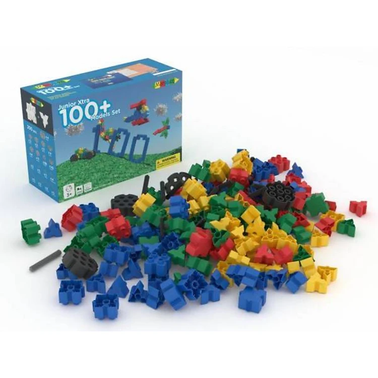 - Mô tả sản phẩm: gồm 1 hộp giấy Carton có nắp đậy tiện dụng để lưu trữ các chi tiết; 200 mảnh ghép đa chiều hình tam giác, hình vuông, các bánh răng và các thanh ghép hình trụ nhiều màu sắc; 1 cuốn sách/cuốn album hướng dẫn sử dụng đi kèm.