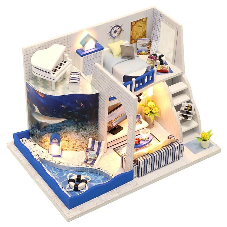 đồ chơi lắp ráp mô hình ngôi nhà búp bê có phòng ngủ trên hồ cá luyện kỹ năng tập trung cho bé yêu