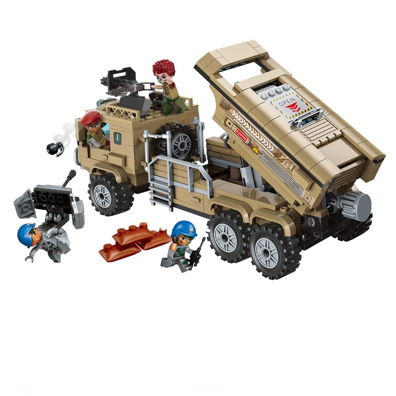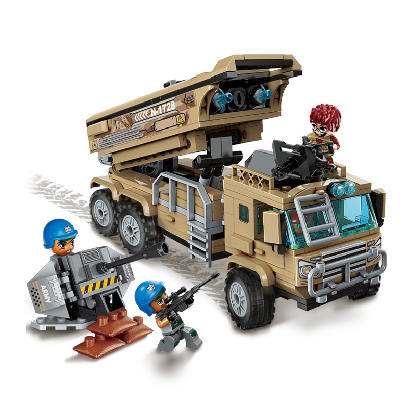 - Bộ lắp ráp Xe phóng tên lửa Qman 1728 (409 chi tiết) tạo mô hình 1 xe tải dài 22*8*14,5 (cm), trạm bắn tỉa 8*7,5*5 (cm) cùng 4 nhân vật cực ngầu