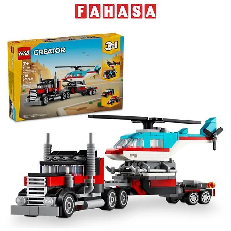 Đồ Chơi Lắp Ráp Xe Tải Vận Chuyển Trực Thăng 3 In 1 - Flatbed Truck With Helicopter - Lego Creator 31146 (270 Mảnh Ghép)