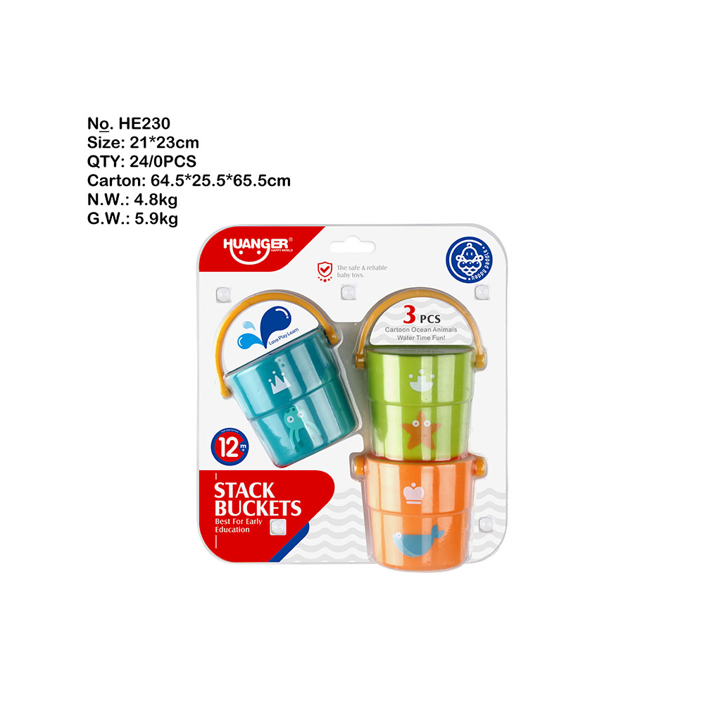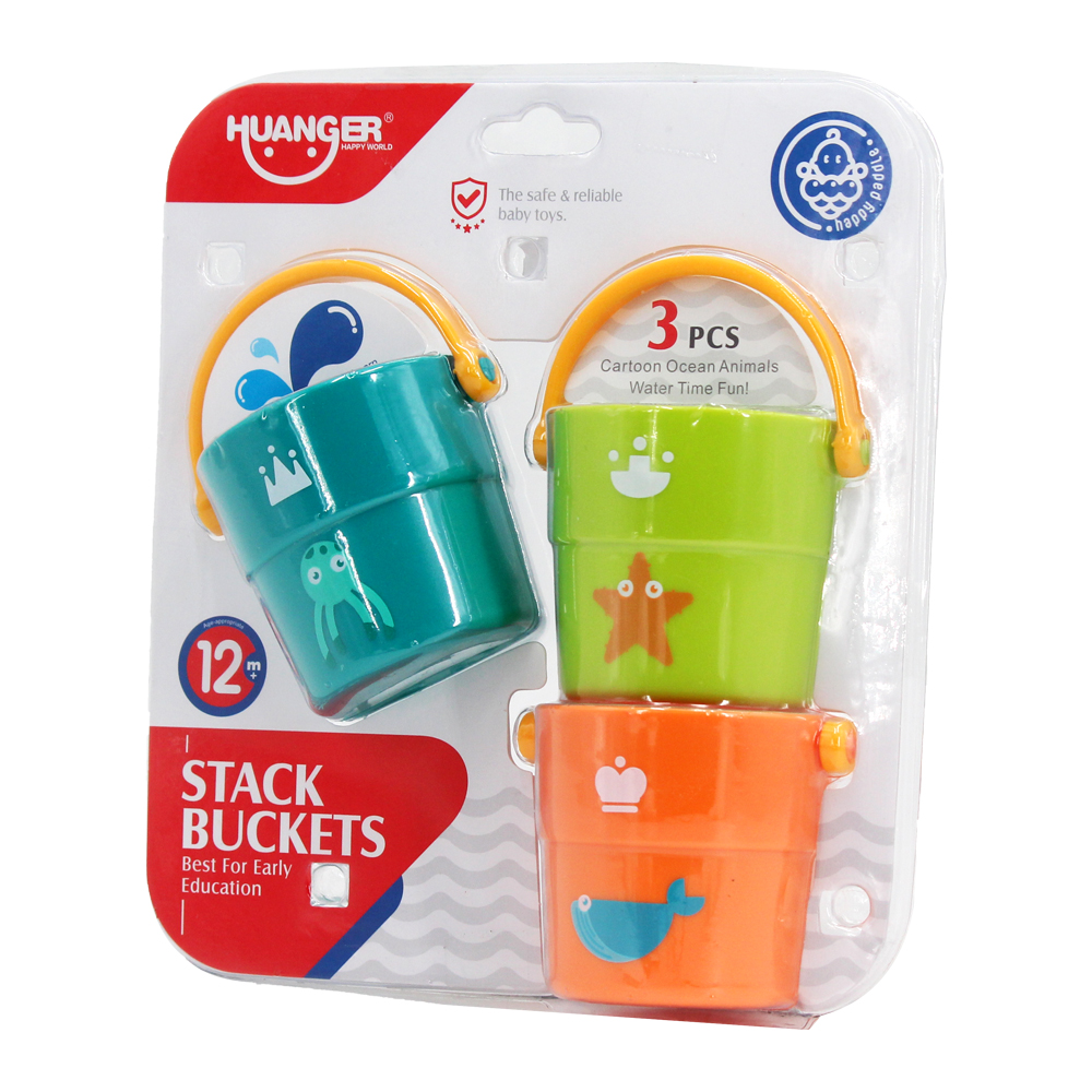 Đồ chơi nhà tắm xô nước Huanger HE0230 (3 xô nước) gồm 3 chiếc xô màu sắc tươi sáng khác nhau. Là dạng đồ chơi giáo dục, kích thích sự phát triển nhận thức và các giác quan của bé trong những giai đoạn đầu đời