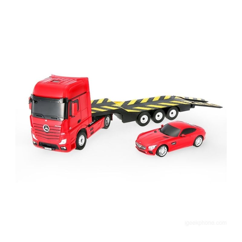 Sản phẩm gồm: đầu xe kéo, rơ móoc, siêu xe Mercedes Benz GT tỉ lệ 1:24, điều khiển 2 trong 1