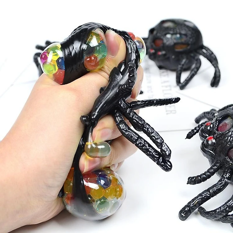 Đồ Chơi Squishy gudetama bóp trút giận hình con nhện đen bóp ra hạt nở xả stress