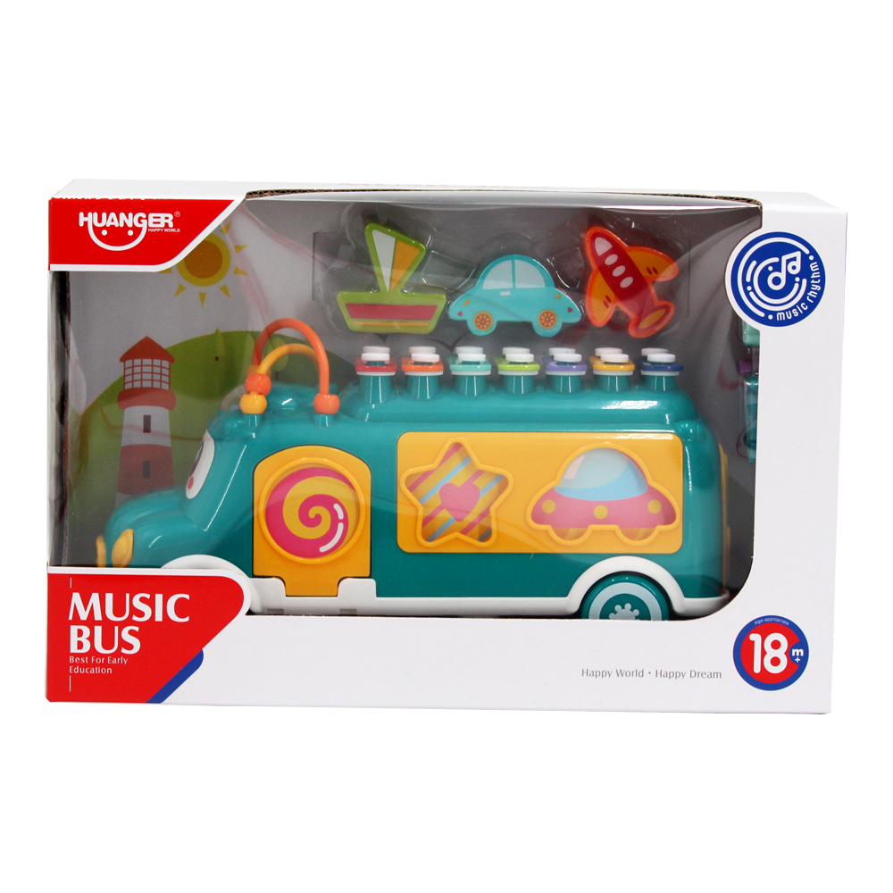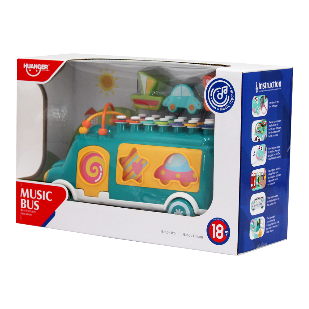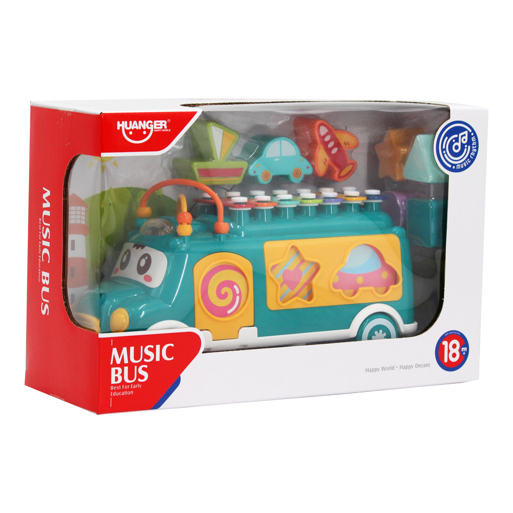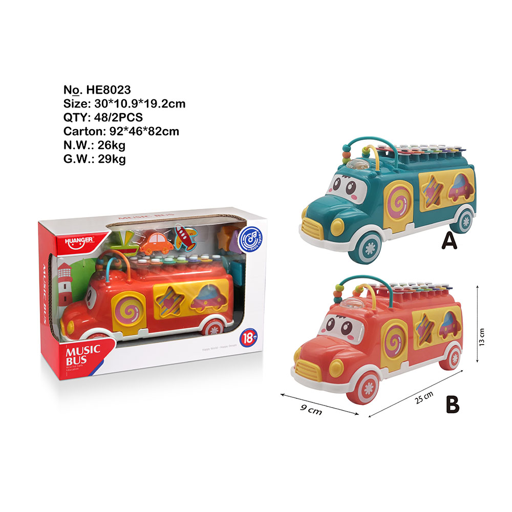 Đồ chơi thả khối hình xe bus kèm đàn gõ Huanger HE8023