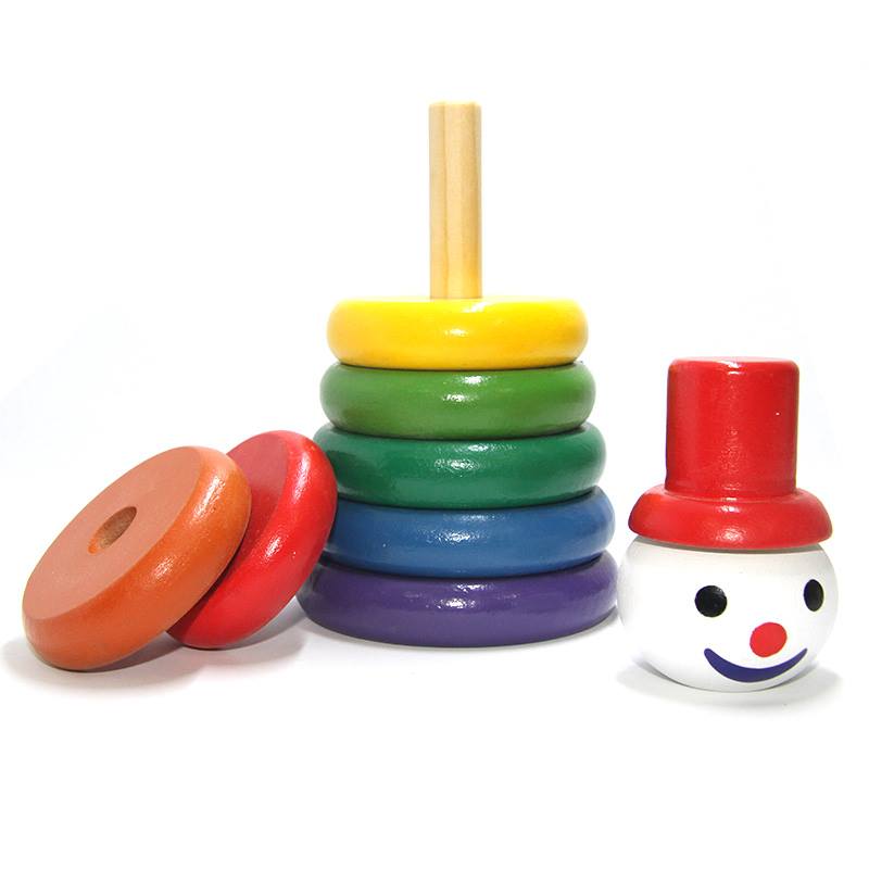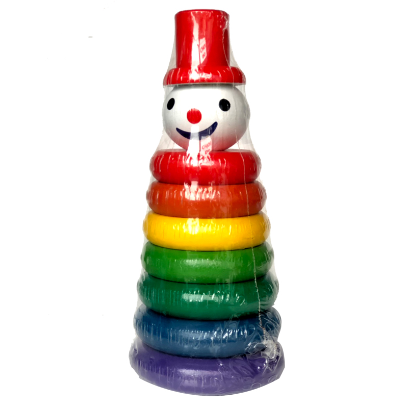 Sản phẩm gồm 1 trục tròn có gắn đế gỗ và 7 vòng tròng với màu sắc và kích thước khác nhau, phía trên có hình chú hề ngộ nghĩnh dùng để chốt giữ cho các vòng gỗ không bị rơi