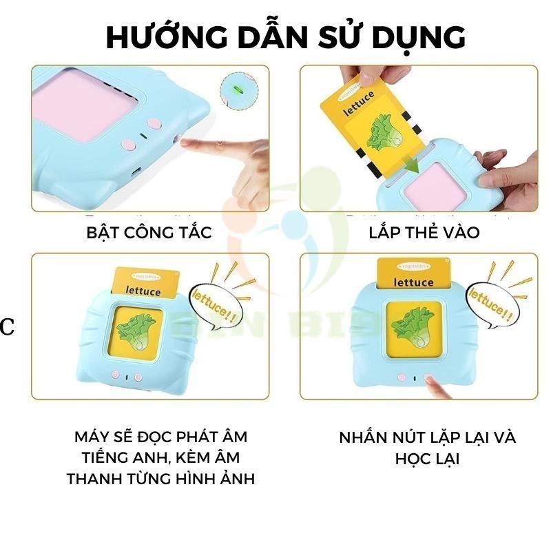 - Máy đọc thẻ âm thanh trong, vang, chuẩn ngữ điệu, phát âm. (có thể điều chỉnh âm lượng bằng nút bấm);