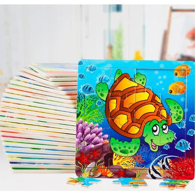 Mỗi một bảng ghép hình có 16 miếng ghép, gồm các hình con vật và xe cộ gần gũi với cuộc sống.