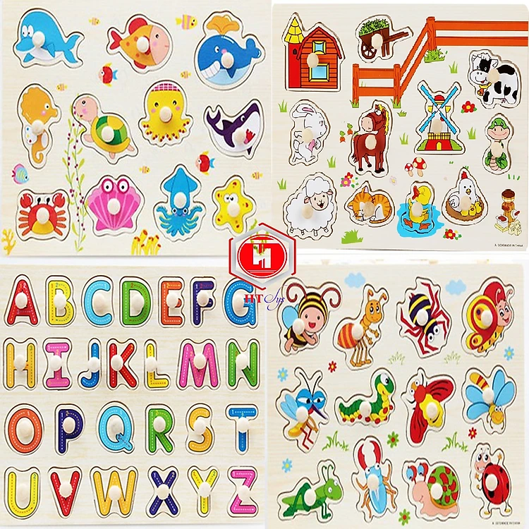 Đồ Chơi Trẻ Em - Đồ Chơi Xếp Hình - Combo 4 Bảng Núm Gỗ Cho Bé