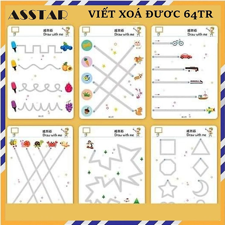 Đồ Chơi Trẻ Em, Học Liệu Montessori, Sách Viết Xoá Được 64 Trang Tặng Kèm 6 Bút, Asstar Đồ Chơi Giáo Dục Cho Bé