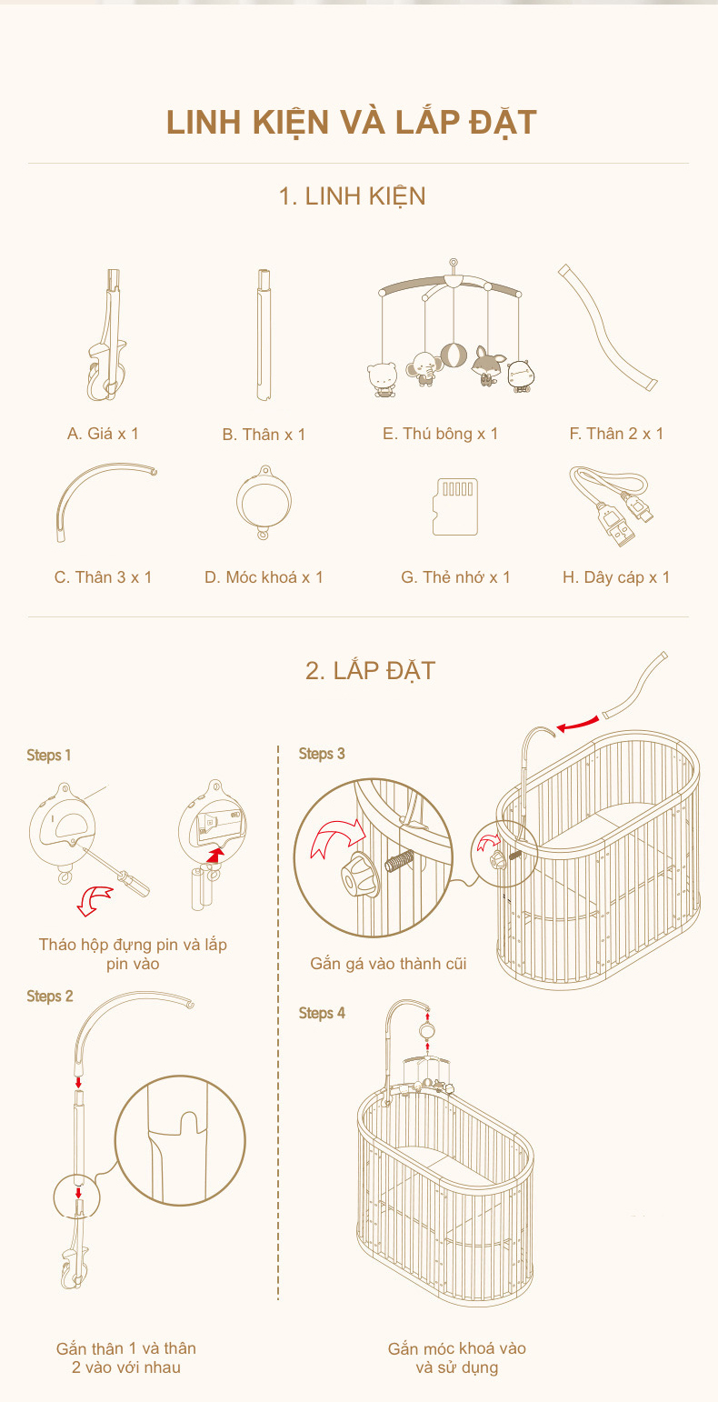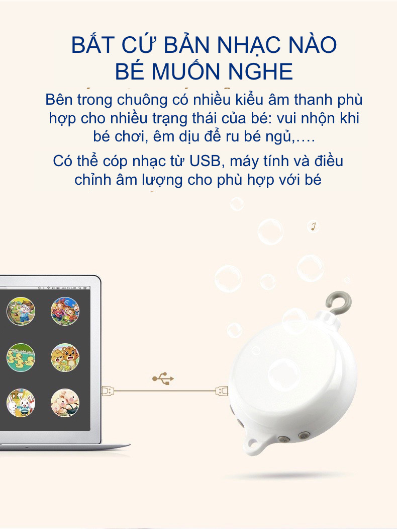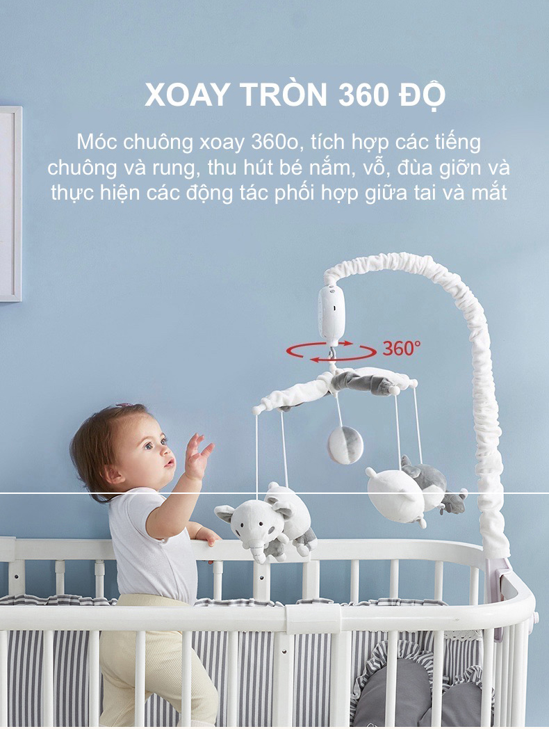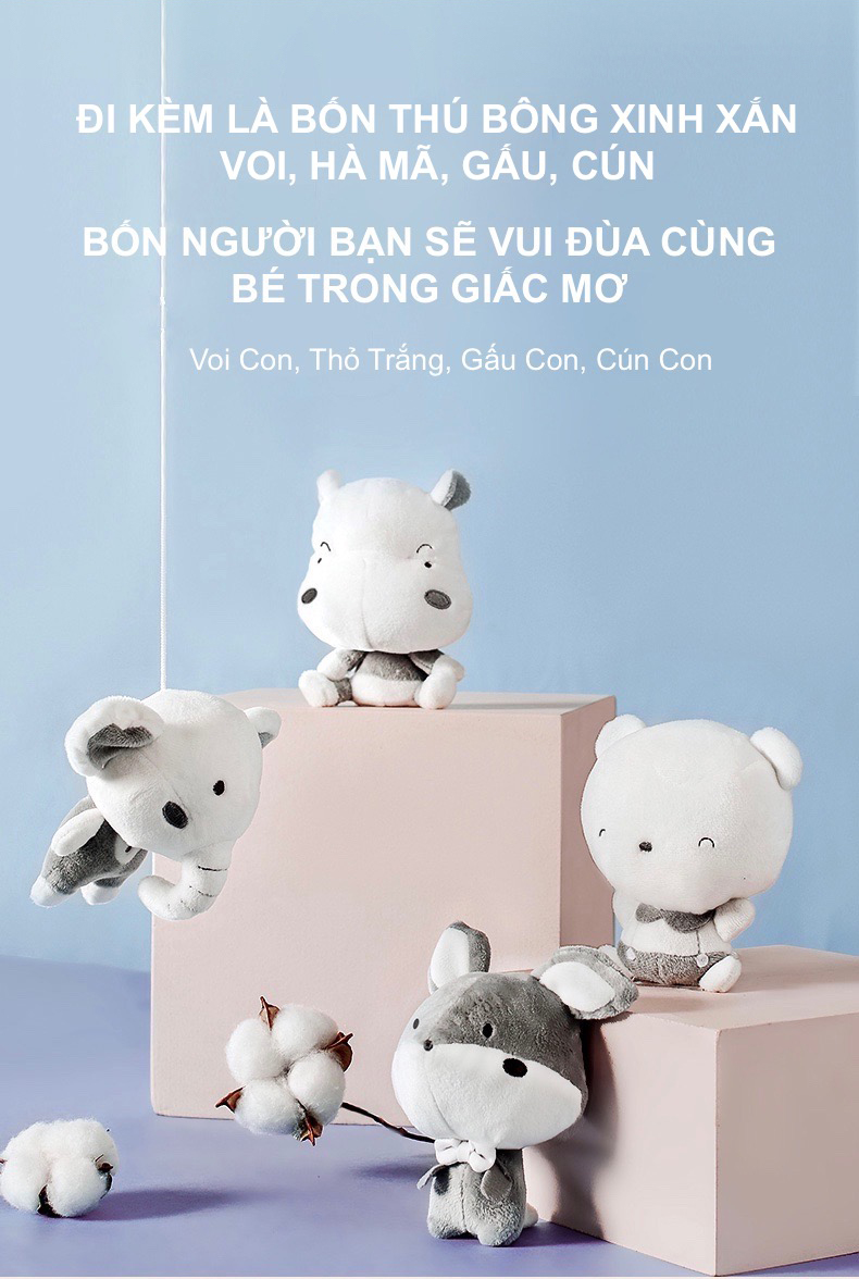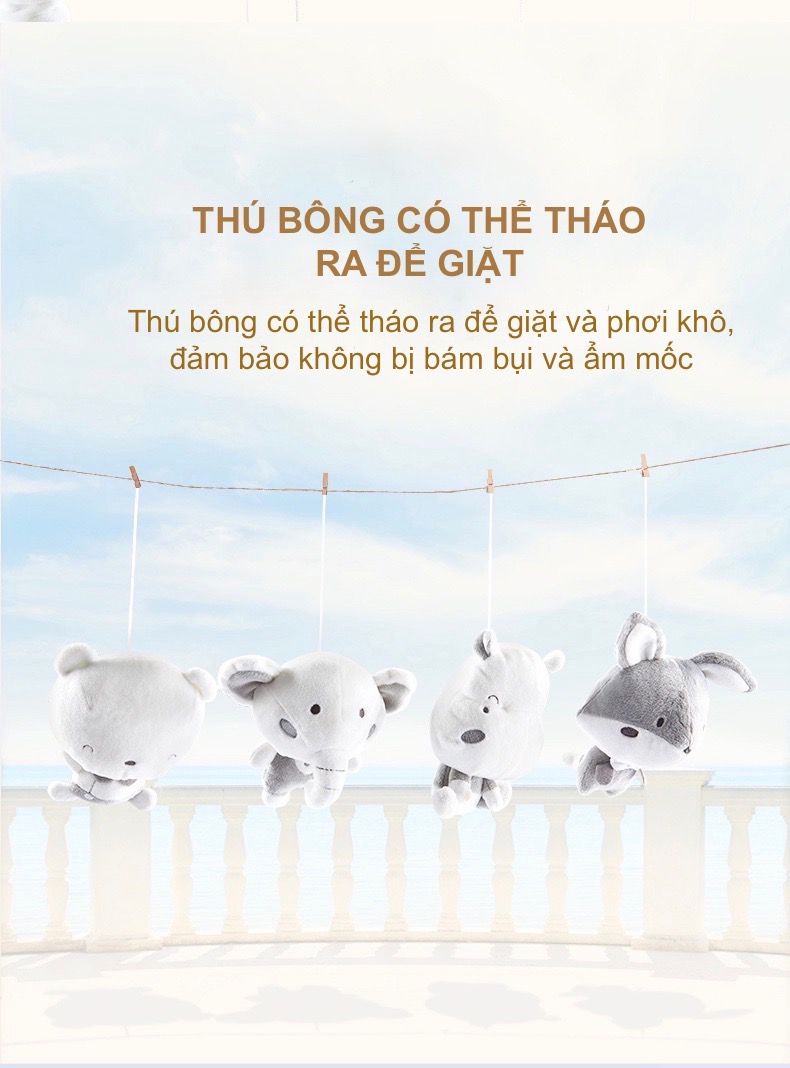 Đồ Chơi Treo Cũi Cho Bé Kèm Chuông Nhạc và Thú Bông
