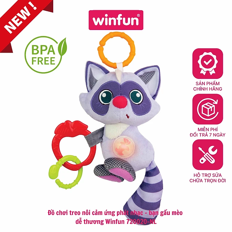 Đồ chơi treo nôi cảm ứng phát nhạc - bạn gấu mèo dễ thương Winfun WF720020-01
