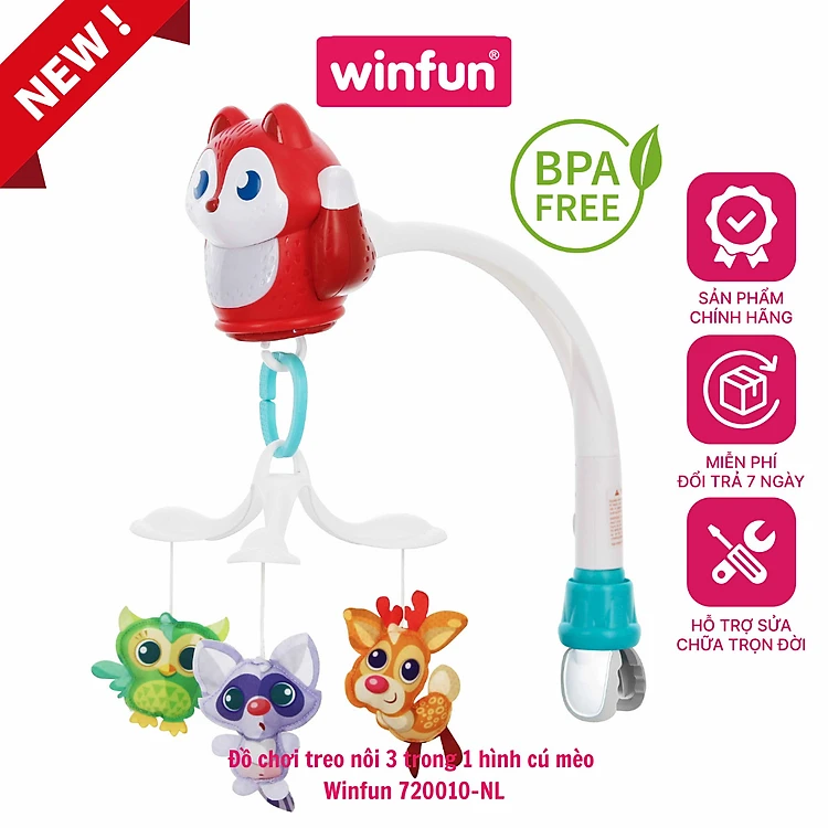 Đồ chơi treo nôi cũi, xe đẩy - 3 trong 1 tự động xoay và phát nhạc ru ngủ cho bé từ 0 tháng tuổi Winfun 720015