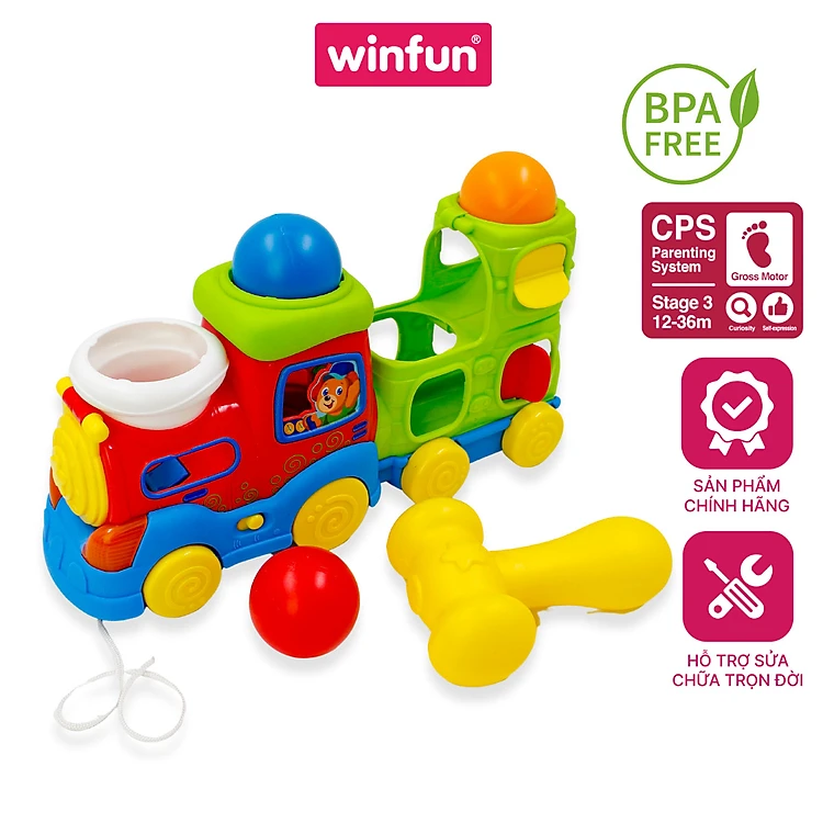 Đồ chơi vận động, luyện tay cho bé - Đầu tàu hỏa kéo dây và đập bóng Winfun 0780