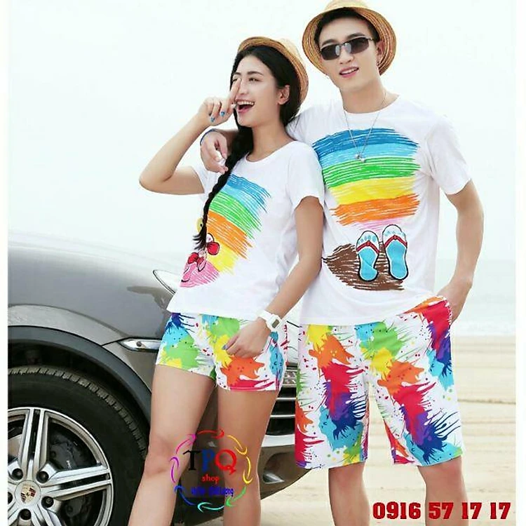 Đồ đồ đôi đi biển xinh xắn chất vải bao đẹp in sắc nét, giá 1 bộ luôn quần và áo