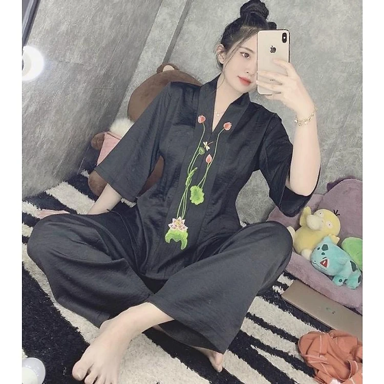 Đồ Lam Đi Chùa # Bà Lai Vải Lụa Hoa Thêu# Đồ Bộ # Quần Áo Nữ# Vải Mát