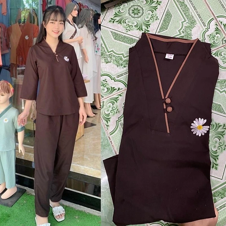 Đồ Lam Đi Chùa # Tim 2Nút Kate Mịn