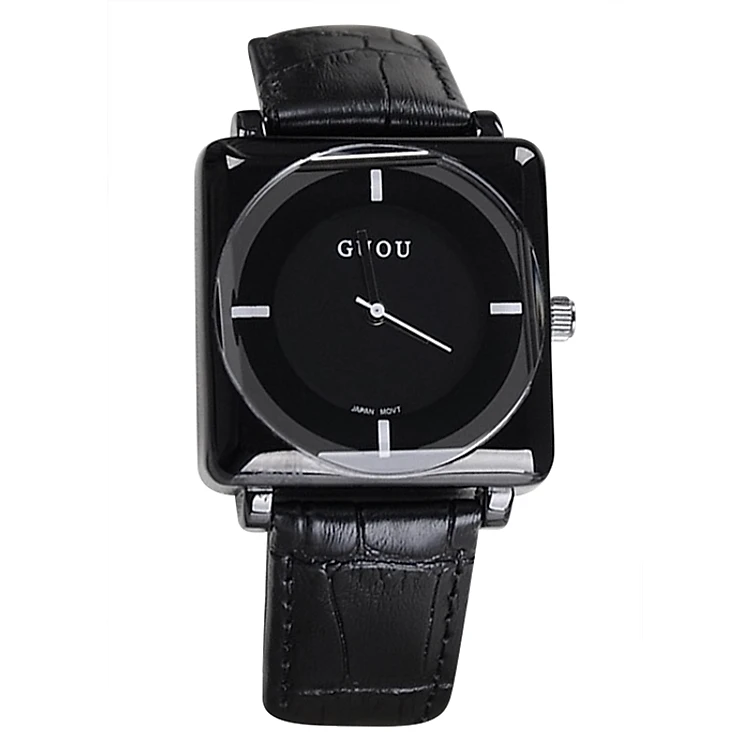 Đồng Hồ Nữ Dây Da GUOU Phong Cách Âu Mỹ TM267 (Đen) sở hữu kiểu dáng độc đáo với thiết kế mặt kính đa hình học, không số cổ điển, phối cùng dây đeo da màu đen cá tính. Kim giờ, phút phối đen trắng nổi bật trên nền cùng tông màu tạo điểm nhấn ấn tượng sắc sảo.