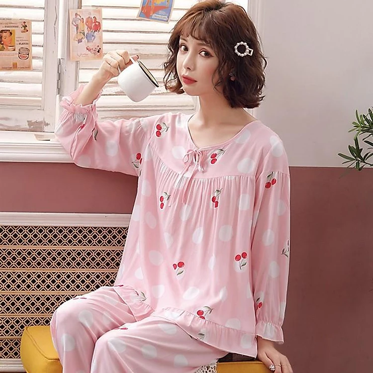 + Mô tả: Đồ ngủ nữ được thiết kế tay dài kết hợp quần dài với họa tiết xinh xắn ngọt ngào mang đậm nét phong cách Hàn Quốc dành riêng cho bạn nữ. Kiểu dáng mới lạ và ấn tượng giúp chị em trở nên hấp dẫn, ngọt ngào hơn trong mắt đấng mày râu.