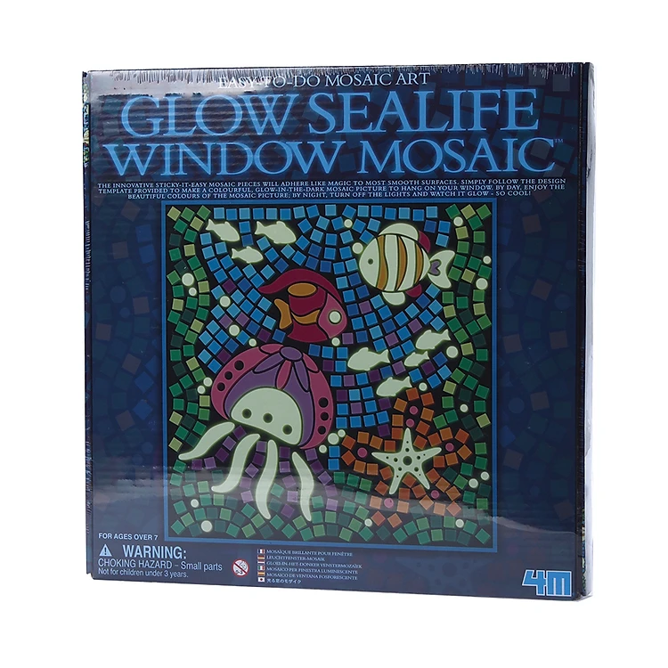 Với những miếng nhựa nhỏ đủ màu sắc và tấm bảng trong suốt, bé sẽ tự tay ghép lại thành hình các sinh vật biển sinh động. Sau khi ghép hình xong, bé có thể sử dụng để treo trang trí trên cửa sổ.