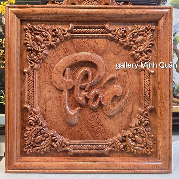 Tranh chữ PHÚC gỗ hương đá liền tấm