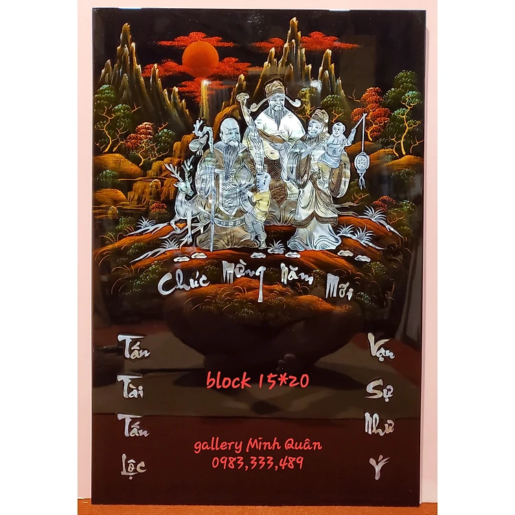 Đốc lịch khảm ốc sơn mài - Phúc lộc Thọ ( Phúc Tam Đa)