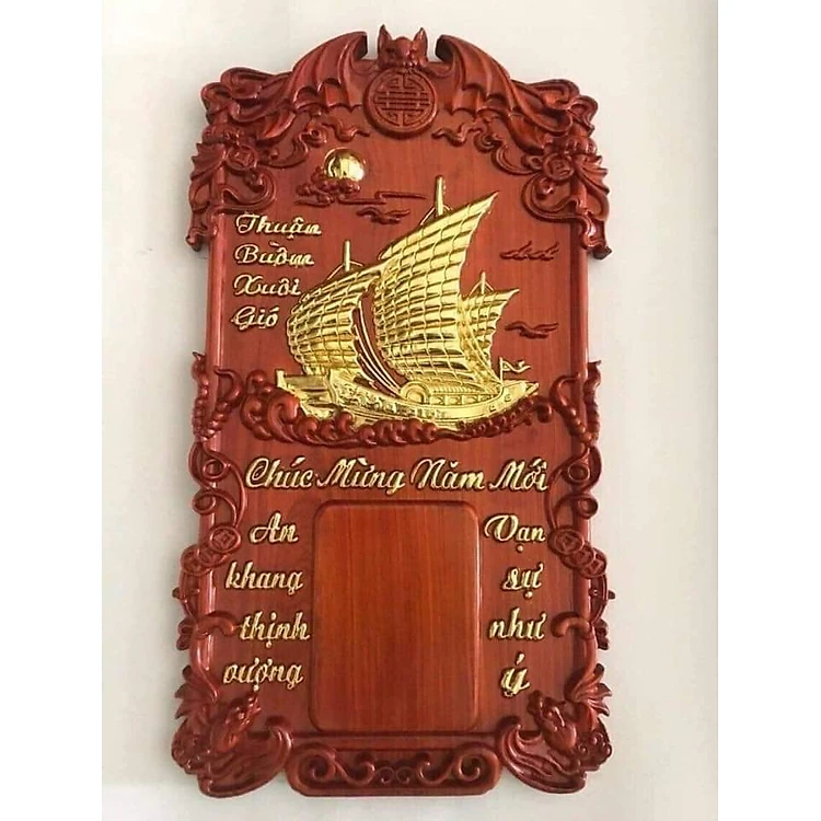 Đốc lịch treo tường khắc thuận buồm xuôi gió bằng gỗ hương