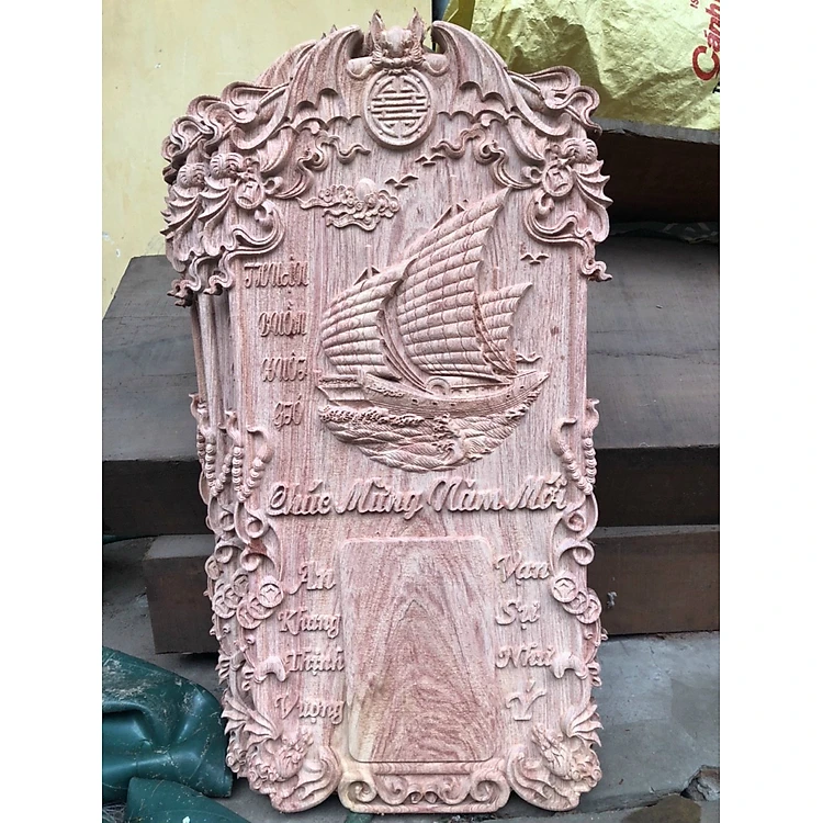 Đốc lịch treo tường khắc thuận buồm xuôi gió kt 80×40×3vm