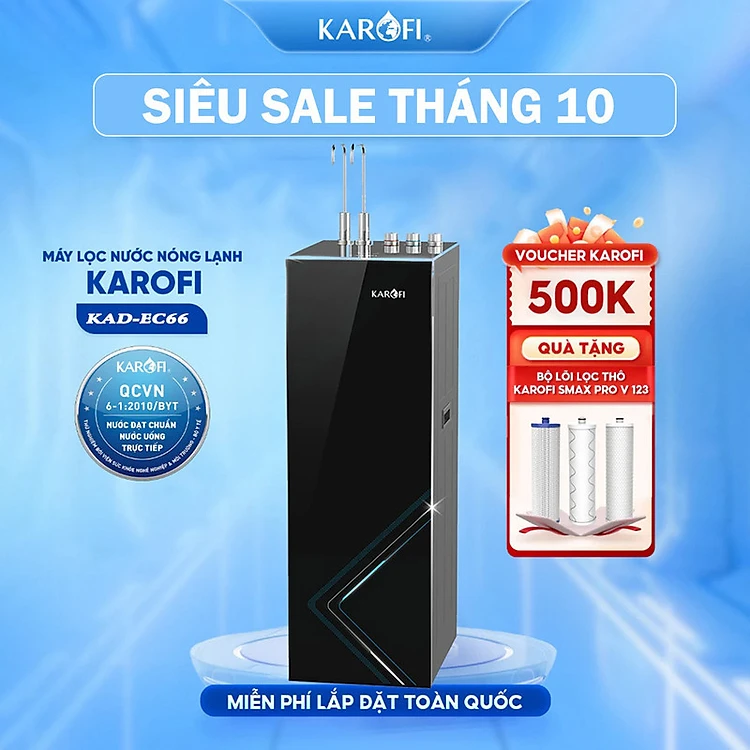 [ĐỘC QUYỀN ONLINE -TẶNG BỘ LÕI ] Máy lọc nước Nóng Lạnh Karofi KAD-EC66 -12 lõi Smax, GIÀU HYDRO-ION KIỀM KHOÁNG, BH36 Tháng - Hàng chính hãng