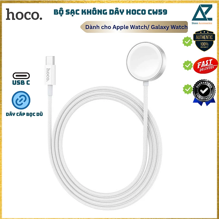 Dock sạc nhanh khung nhôm Hoco CW59 dành cho Apple watch/ Samsung Galaxy Watch cổng type C, Dây Bọc Dù_ Hàng Chính Hãng