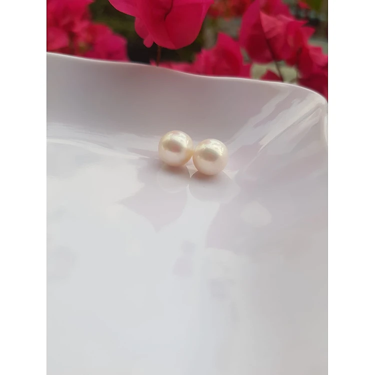 Đôi Bông Ngọc Trai trắng sáng 9mm bóng đẹp Size hạt 9mm ngọc trai cao cấp thiên nhiên mệnh Kim Thủy Nữ về bọc Vàng làm đôi bông tai vàng đeo cực kỳ xinh luôn ạ