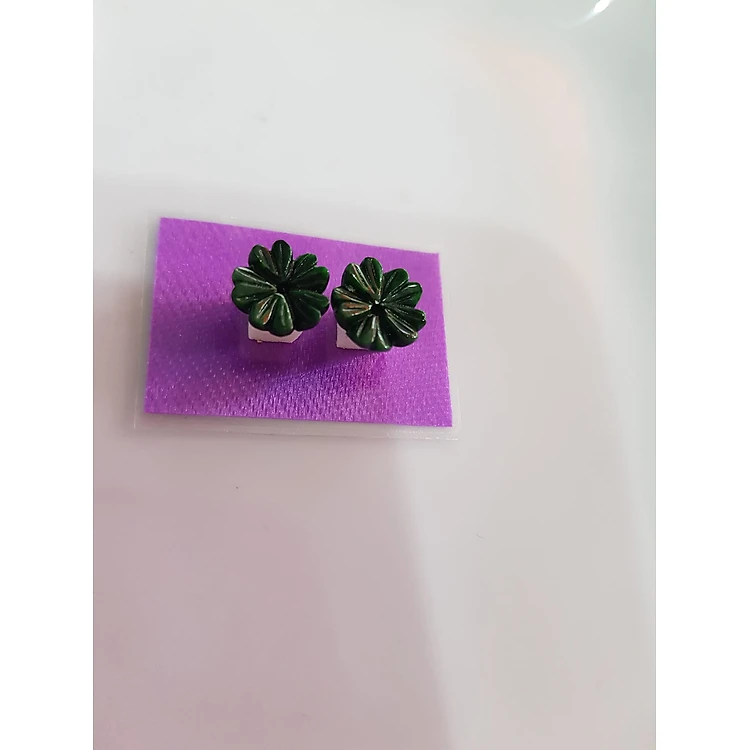 Đôi bông tai Mới Kiểu Bông Hoa Mai Trái Tim 5 cánh Đá Ngọc cẩm thạch tự nhiên xanh ngọc đậm bóng đẹp ạ Size 9mm x dầy 2,5mm Nữ mệnh Thủy Mộc Hỏa bọc vàng đeo rất đẹp sang ạ