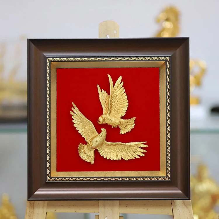 Đôi Tranh Chim Bồ Câu mạ vàng