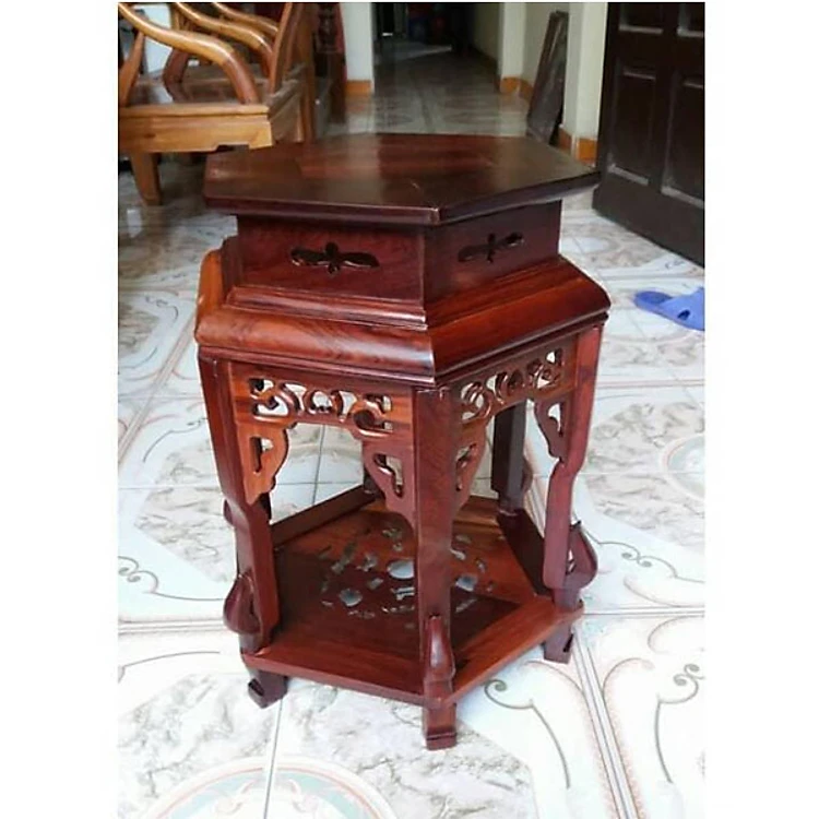 Đôn lục giác gỗ hương cao 60 cm măt 32 cm
