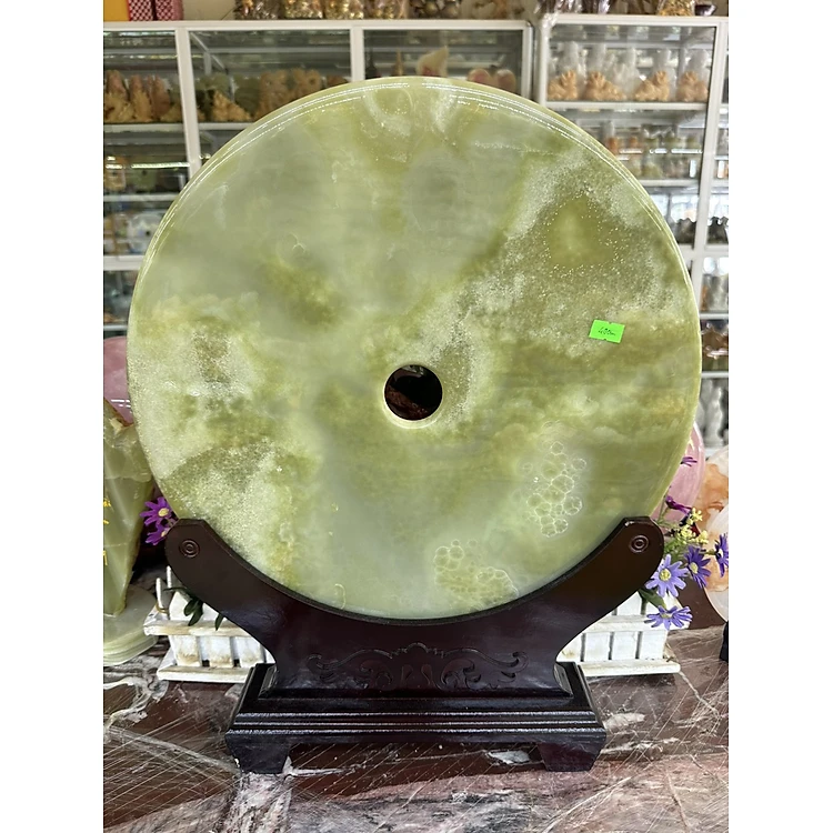 Đồng điếu (đồng tiền ) phong thủy đá ngọc Onyx xanh nhạt - Đường kính 40 cm