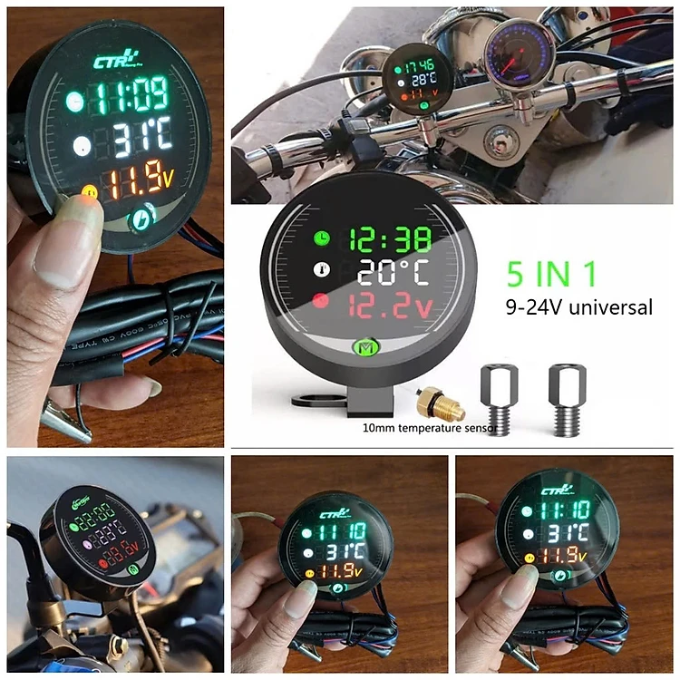 Đồng Hồ Báo Giờ Gắn Xe Máy 3in1 Màn Hình LED - Mẫu Mới, Chống Nước, Loại Tốt