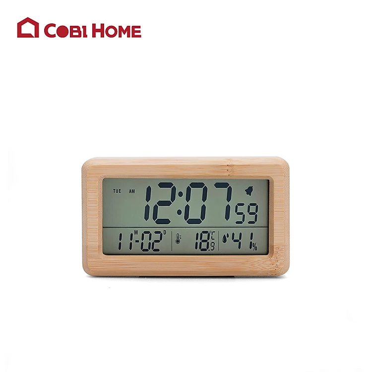 Đồng hồ báo thức để bàn kỹ thuật số bằng tre_Màu gỗ tự nhiên