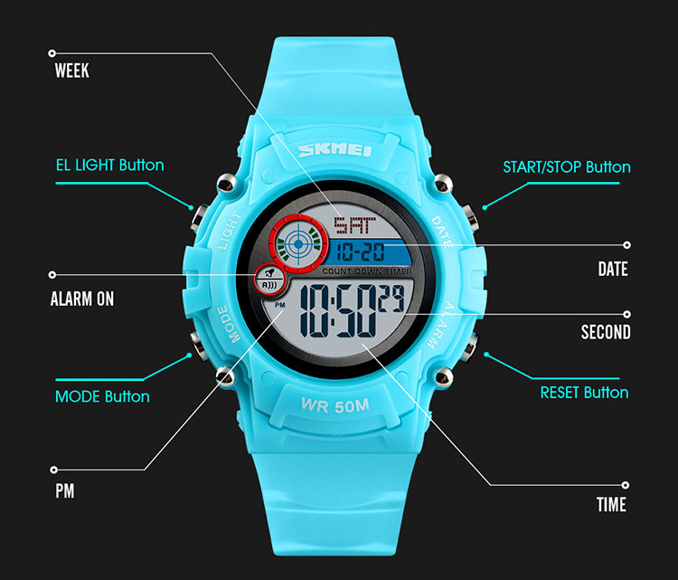 - Đồng Hồ Bé Skmei SK1477 (220mm) có thiết kế đồng hồ thể thao, thời trang, cá tính, có đèn, có số lớn cho các bé dễ xem giờ.