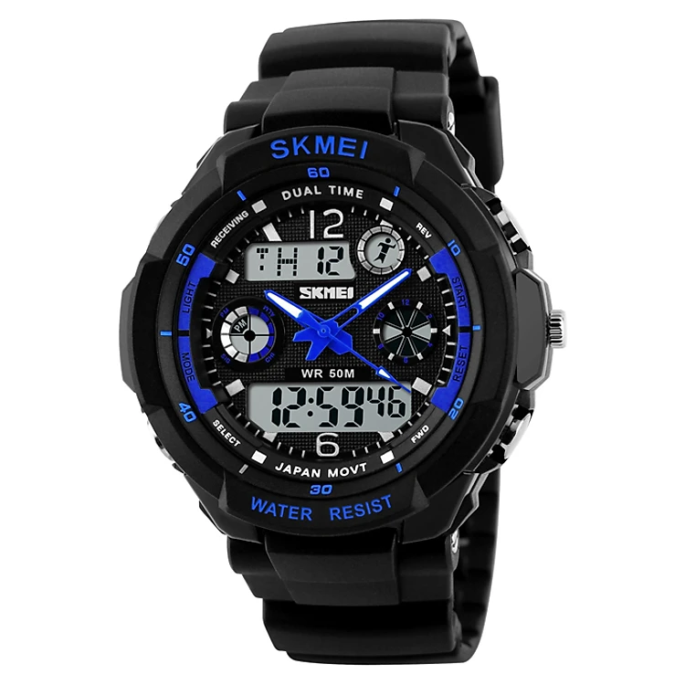 Đồng Hồ Bé Trai Dây Plastic SKMEI S-SHOCK 0931 - Xanh Dương có chức năng hiển thị hai vùng thời gian đặc biệt hữu ích cho các bạn muốn cài đặt thêm một múi giờ quốc tế. Chế độ hiển thị giờ bằng đèn LED giúp bạn xem giờ trong điều kiện thiếu ánh sáng hay ban đêm một cách dễ dàng. Ngoài ra, đồng hồ còn có đủ chức năng, xem giờ mà còn xem ngày, tháng, hẹn giờ, tính giờ chạy bộ. Đồng hồ thể thao S-Shock Skmei có kiểu dáng thể thao. Tông màu xanh dương của đồng hồ cũng góp phần tô điểm phong cách trẻ trung và độc đáo.