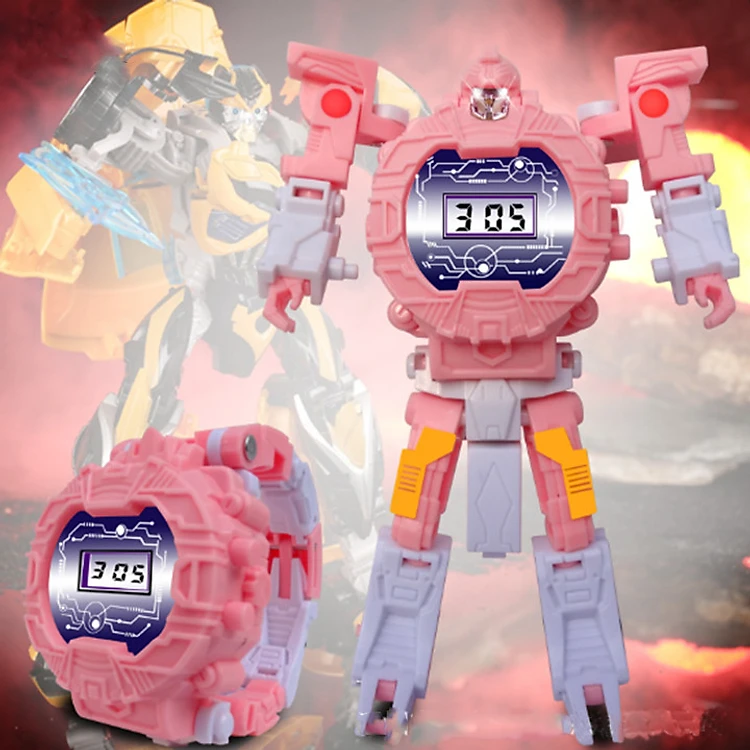 Đồng hồ biến hình robot siêu nhân cho bé gái 5552 màu hồng