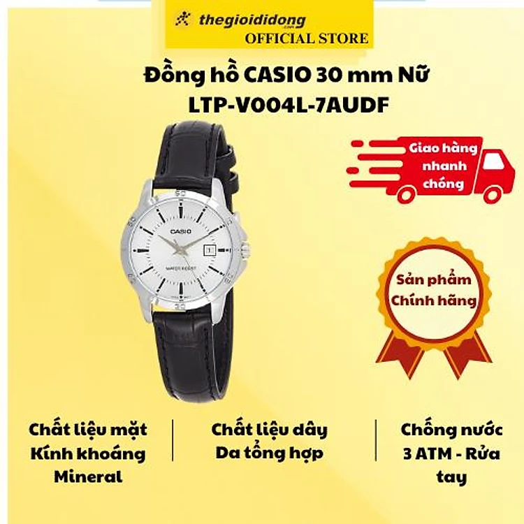 Đồng hồ Casio LTP-V004L-7AUDF là chiếc đồng hồ nữ mang thương hiệu Casio nổi tiếng và có uy tín đến từ Nhật Bản.