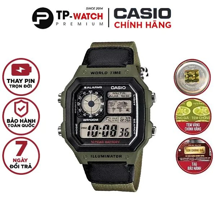 Đồng Hồ Casio Nam Dây Da Phối Vải AE-1200WHB-3BVDF